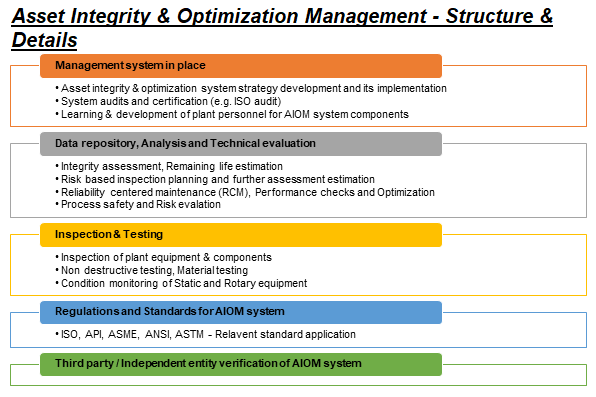RBI is becoming very important tool in recent times for Asset optimization in terms of operations and maintenance of industrial sector complex e.g. chemicals / continuous process / fertilizer / Oil & gas / metals / pharmaceuticals / cement etc. RBI accelerates meeting economic and reliability requisites in line with regulatory obligations with advancement in plants’ efficiency and monetary performance, availability along with environment, health & safety aspects. It also helps pushing the life and condition of plant / complex by putting long term inspection and testing procedure in practice. RBI is one of the major components of Asset Integrity Management and Optimization. We will see the details of Asset Integrity Optimization Management in next topic of discussion.