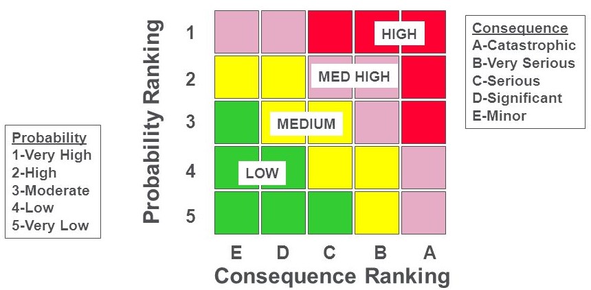 Risk ranking for different probability and consequences of failures can be done as in matrix below.